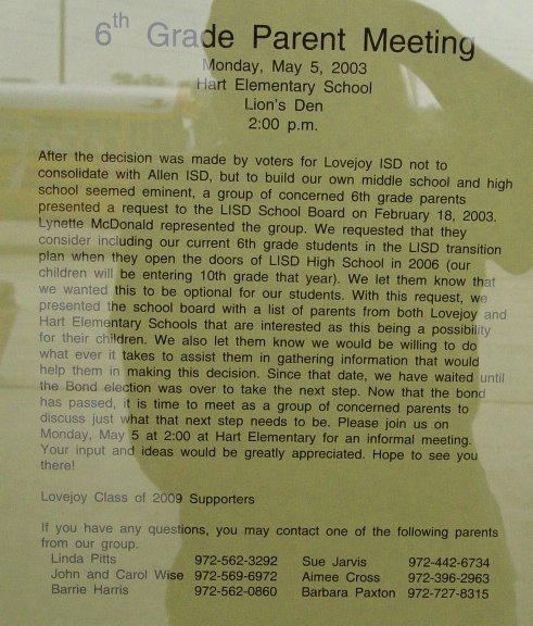 Election (Feb 2003) and Bond Election (April 2003) that created Lovejoy secondary schools.